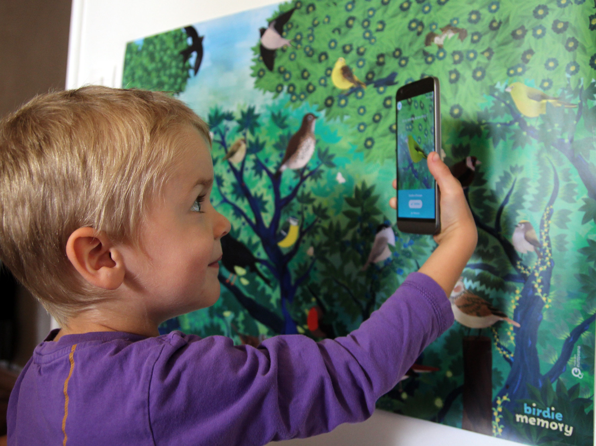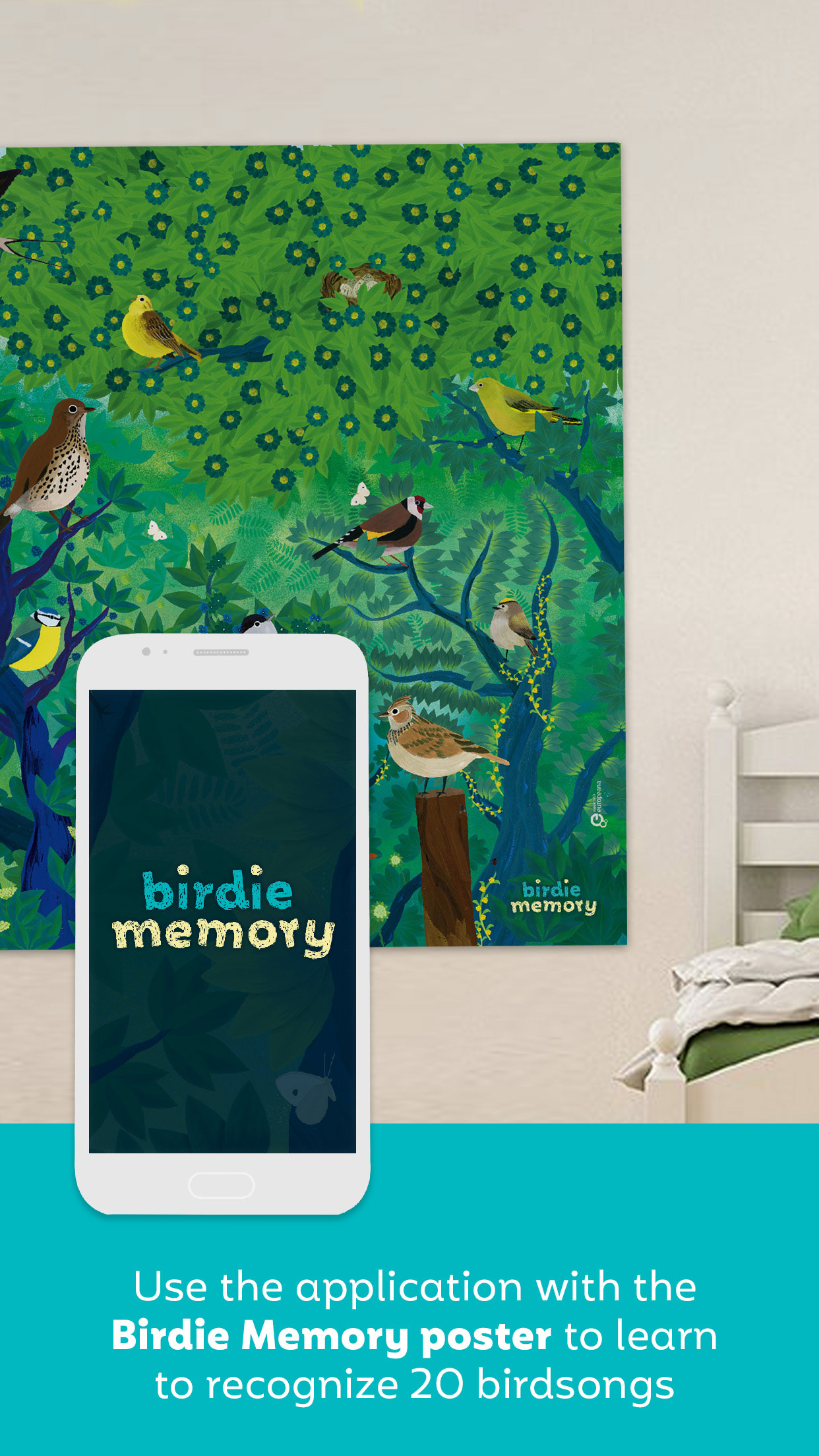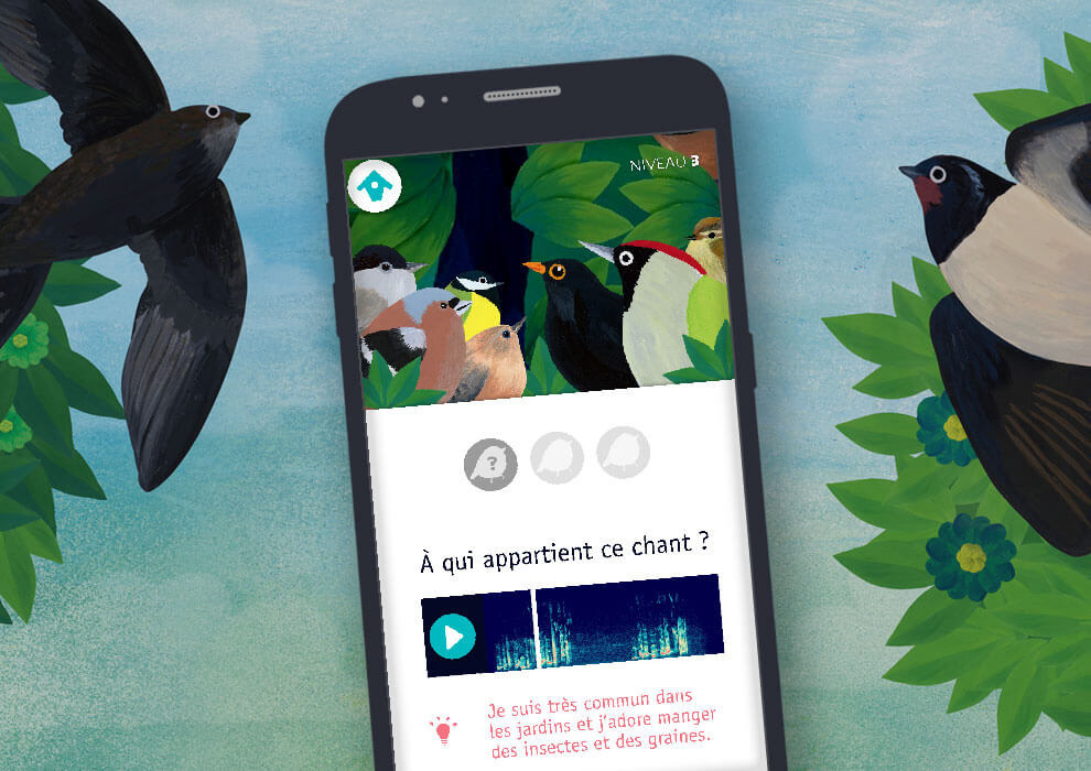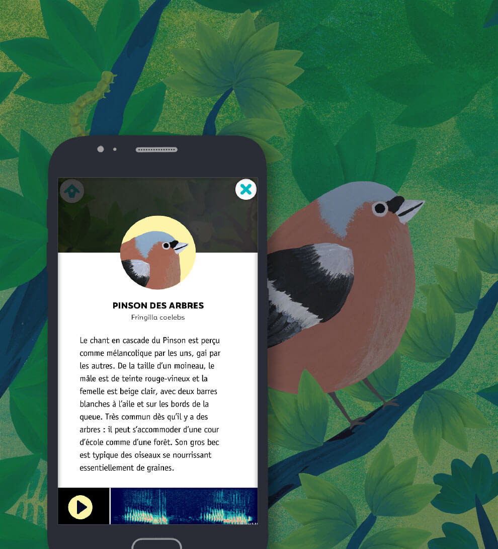 It is large colorful poster representing 20 illustrated birds. The free augmented-reality app allows to listen to the birdsongs. You can listen and listen to the songs as many times as you want, then challenge yourself by playing the Memory, which includes different levels of progressive difficulty. The project was funded through an Europeana grant and a crowdfunding campaign (nov 2018).